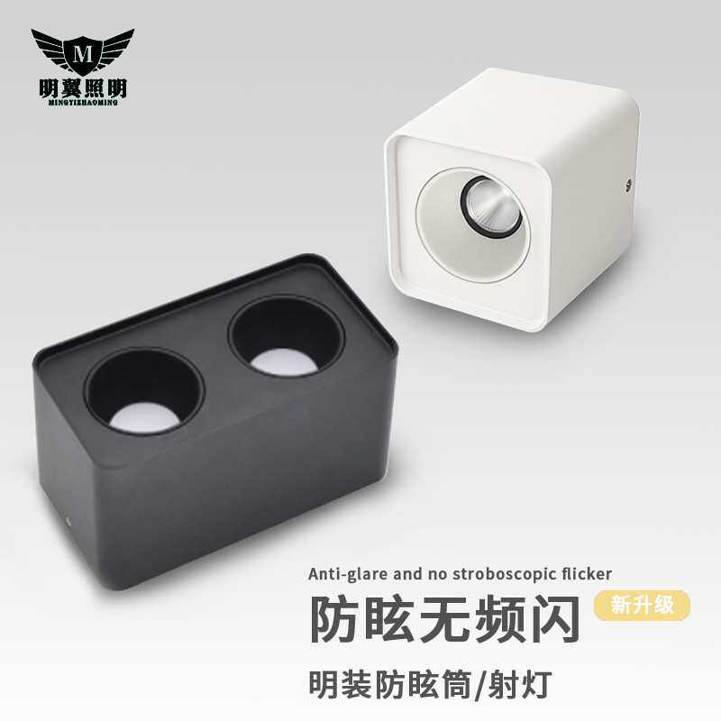 📚 明装射灯 防眩家用客厅餐厅二头四头格栅灯射灯 cob方形斗胆灯