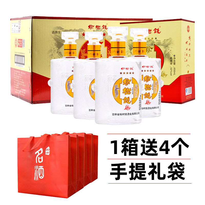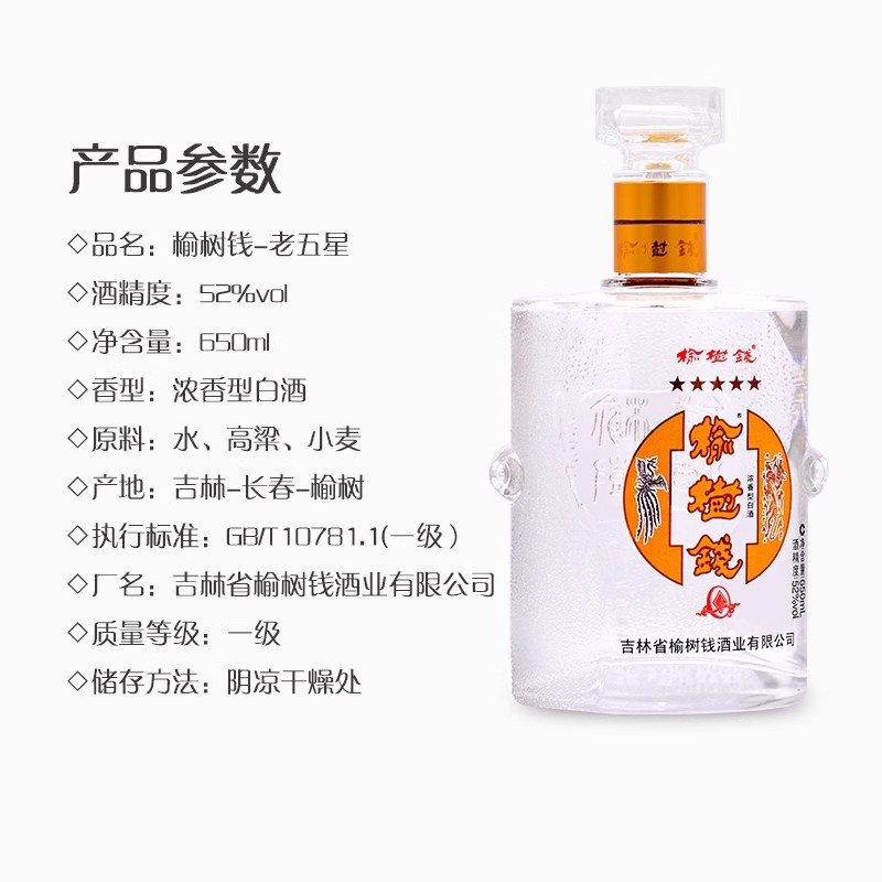 📚 榆树钱酒52度老五星浓香型纯粮食酒礼盒装东北吉林名酒年货送礼