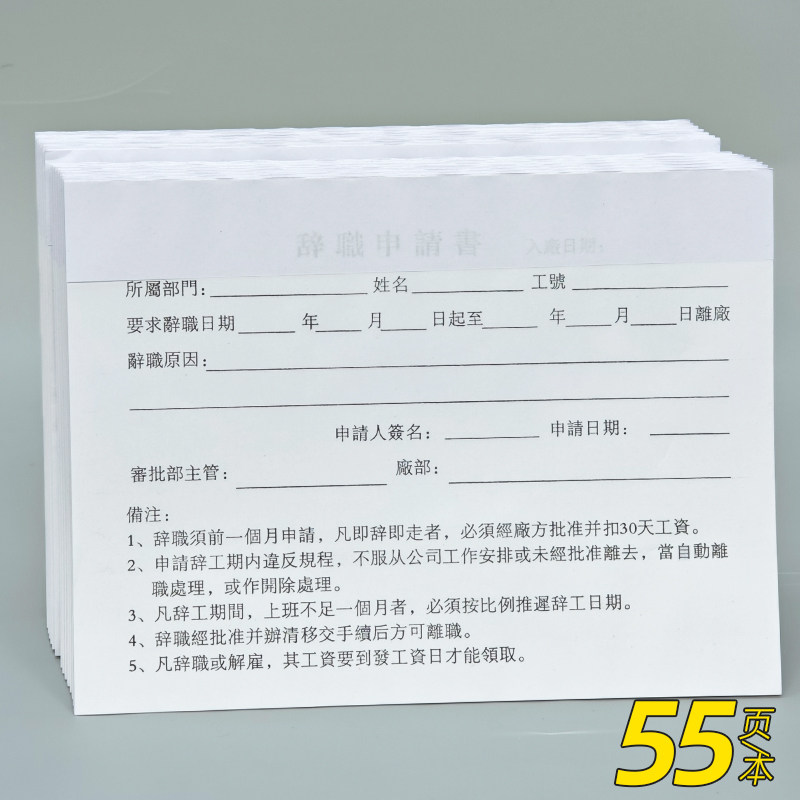 📚 辞职申请书定做离职请假条休假调休表员工辞工报告单公司人事行政