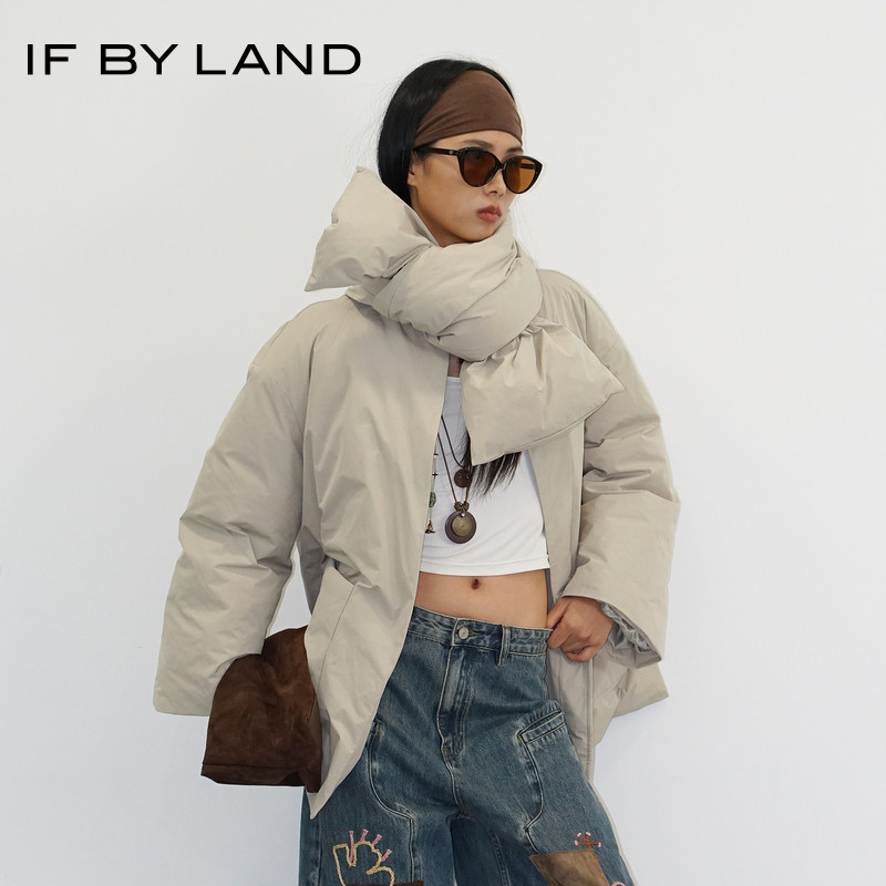 📚 IF BY LAND 设计师品牌 25冬季新款浅绿色可拆卸围巾短款羽绒服