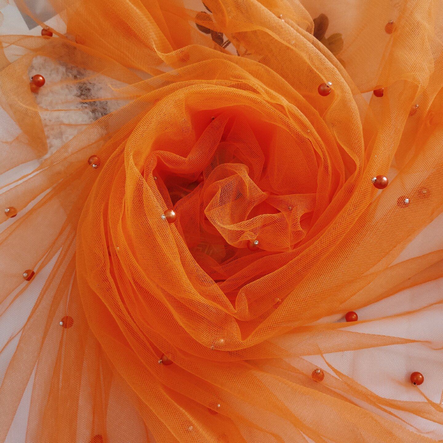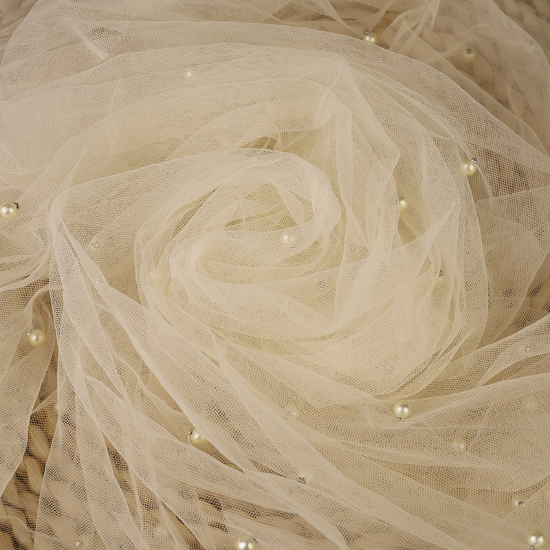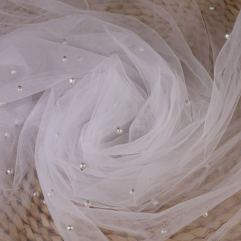 📚 柔软珍珠网纱加密钉珠婚纱装饰布料拍照背景布手工diy婚庆面料