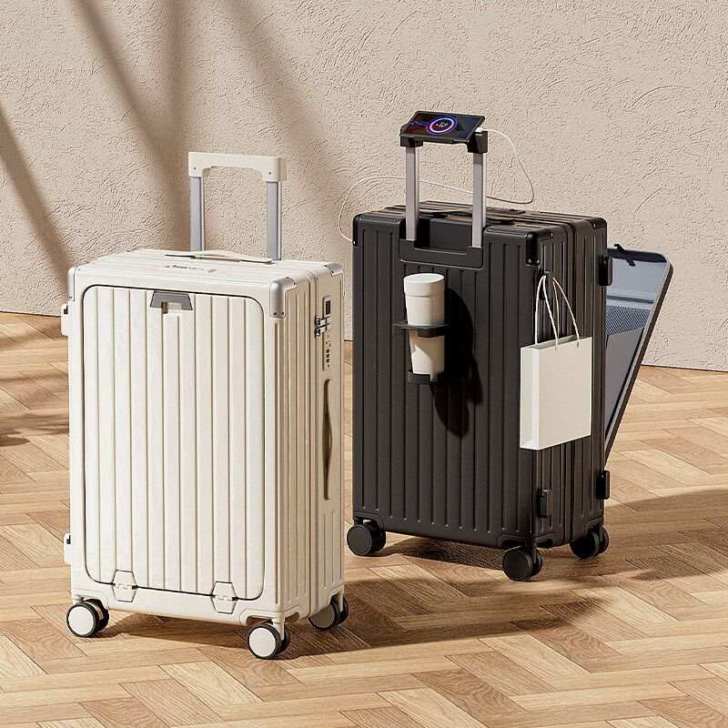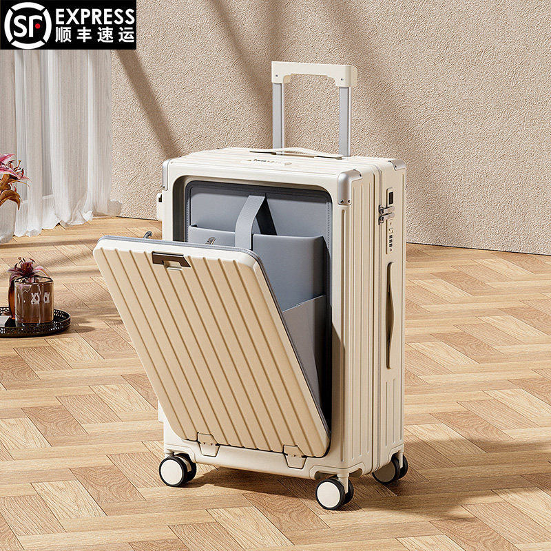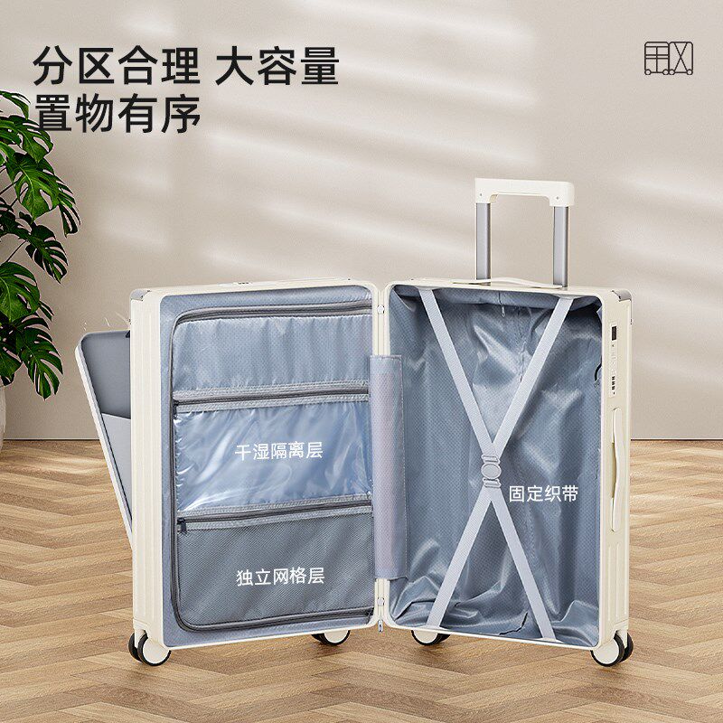 📚 前开盖行李箱大容量多功能男女拉杆箱24寸万向轮密码箱铝框旅行箱