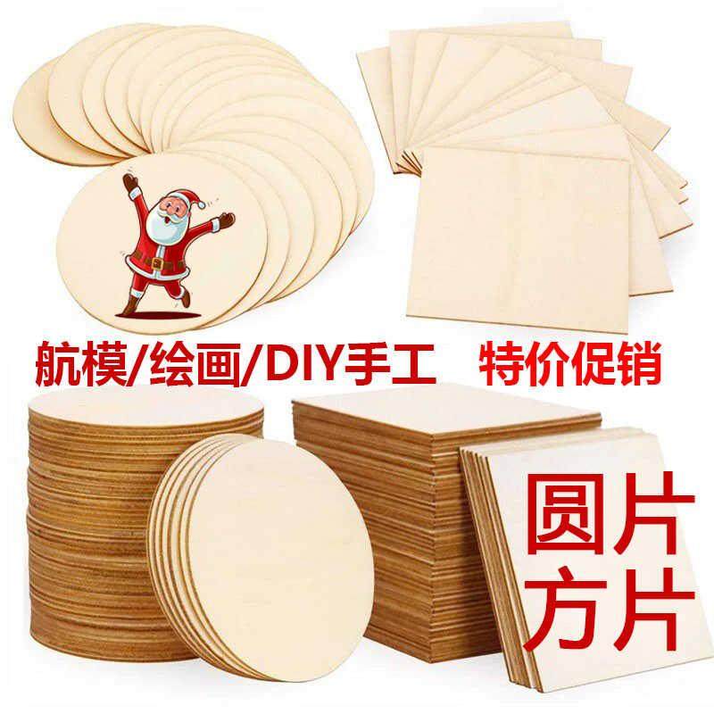 📚 圆木片方木片diy手工制作创意手绘画木板烙画杨木层圆木板薄木板