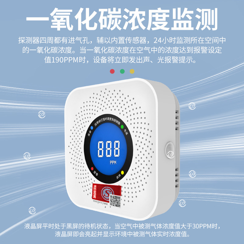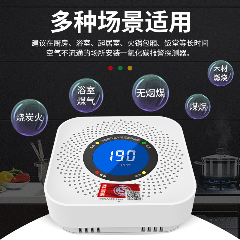 📚 一氧化碳报警器家用煤烟co浓度探测器气体户外露营消防认证检测仪