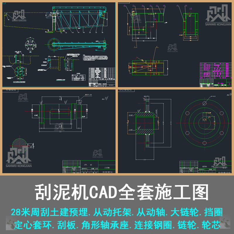 📚 刮泥机施工图纸刮土建预埋从动托架从动轴刮板闷盖全套CAD施工图