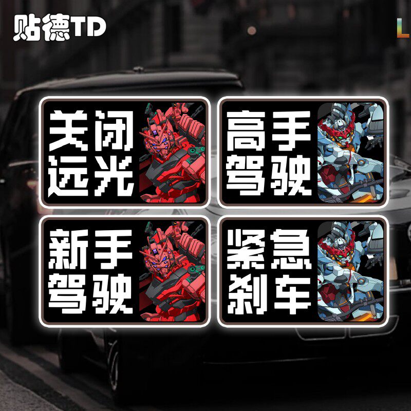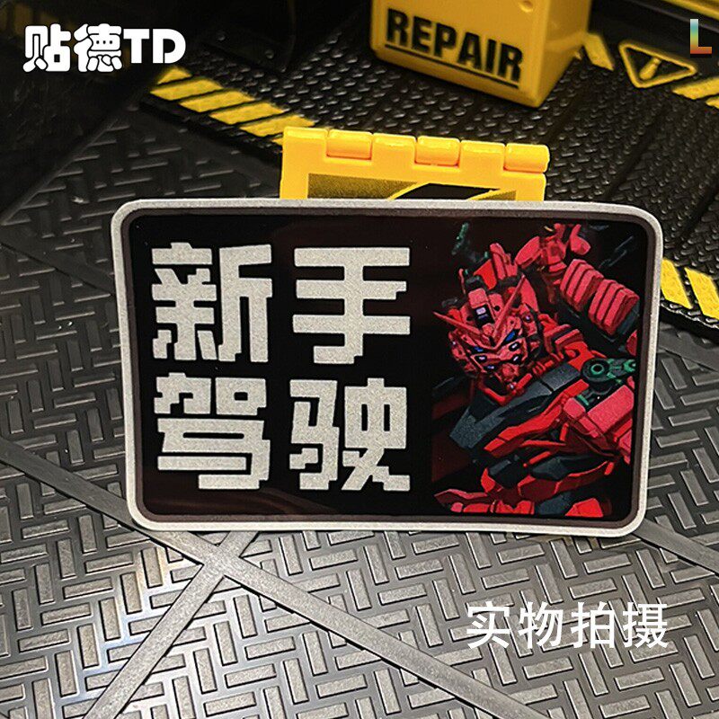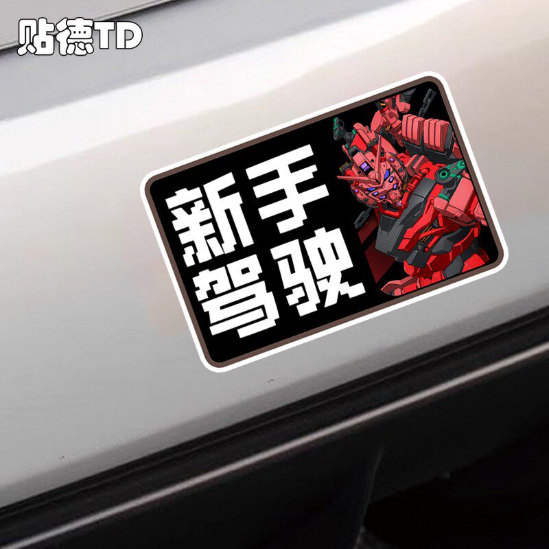 📚 红色高达GQuuuuuuX新手驾驶反光贴汽车划痕遮盖装饰玻璃静电贴