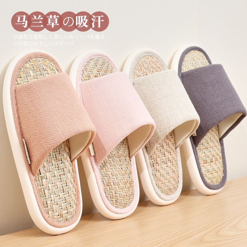📚 日式马兰草家用凉拖鞋女夏季亚麻吸汗防臭春秋男士家居木地板静音
