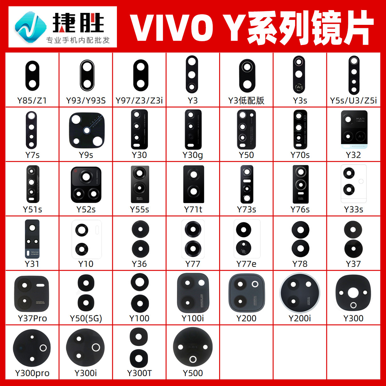 📚 适用VIVO Y系列镜面Y76s Y55s Y77 Y78 Y100 Y200 Y300摄像头镜片