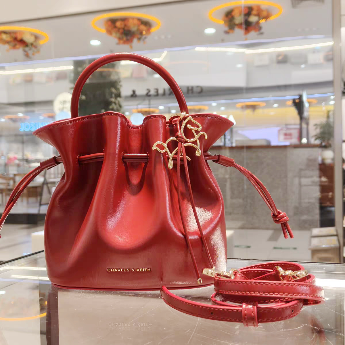 📚 CHARLES&KEITH小CK2-10271696抽绳简约手提水桶包斜挎包福袋包