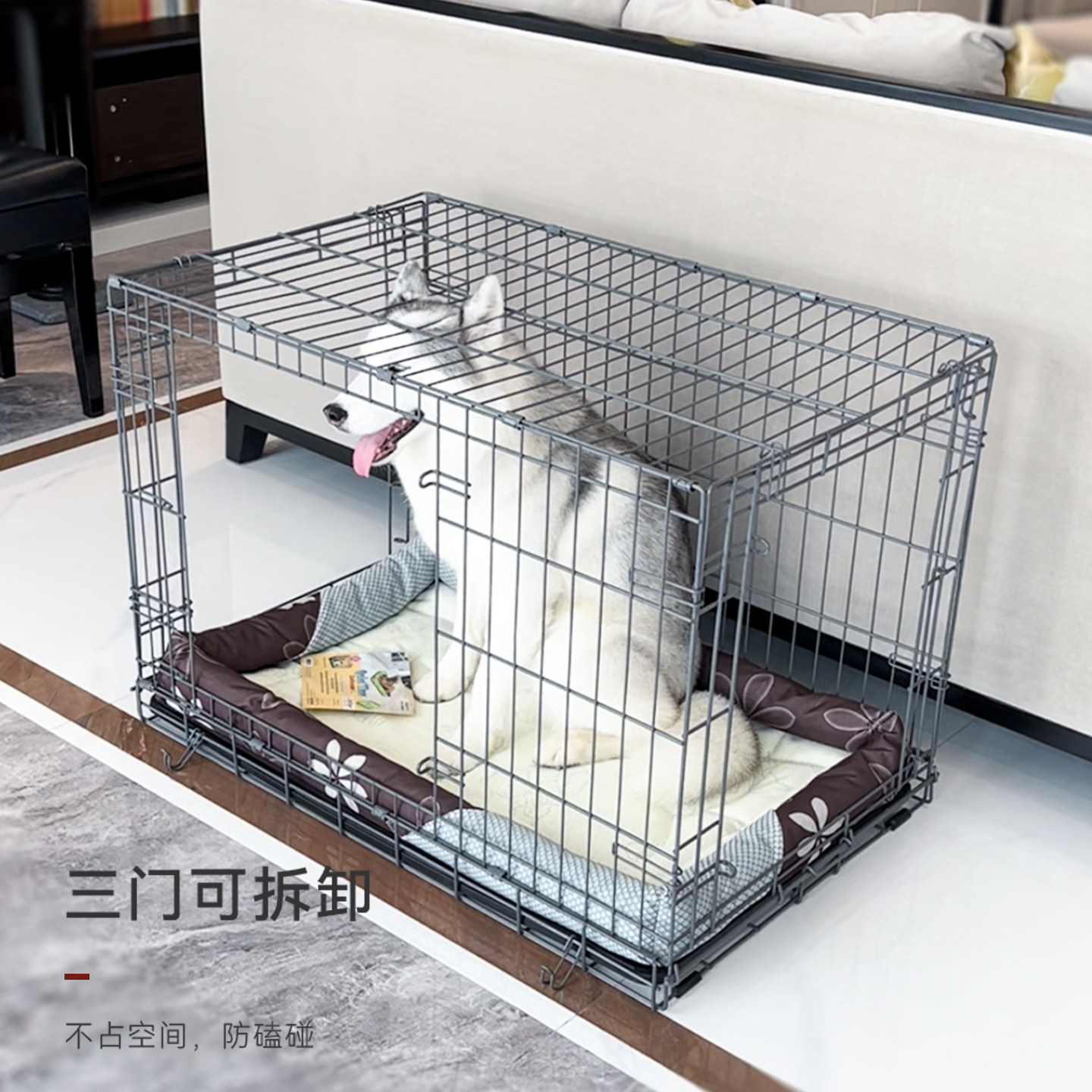 📚 中西【Midwest】3门大型犬狗笼子加粗厚可折叠不易锈碳钢室内金毛