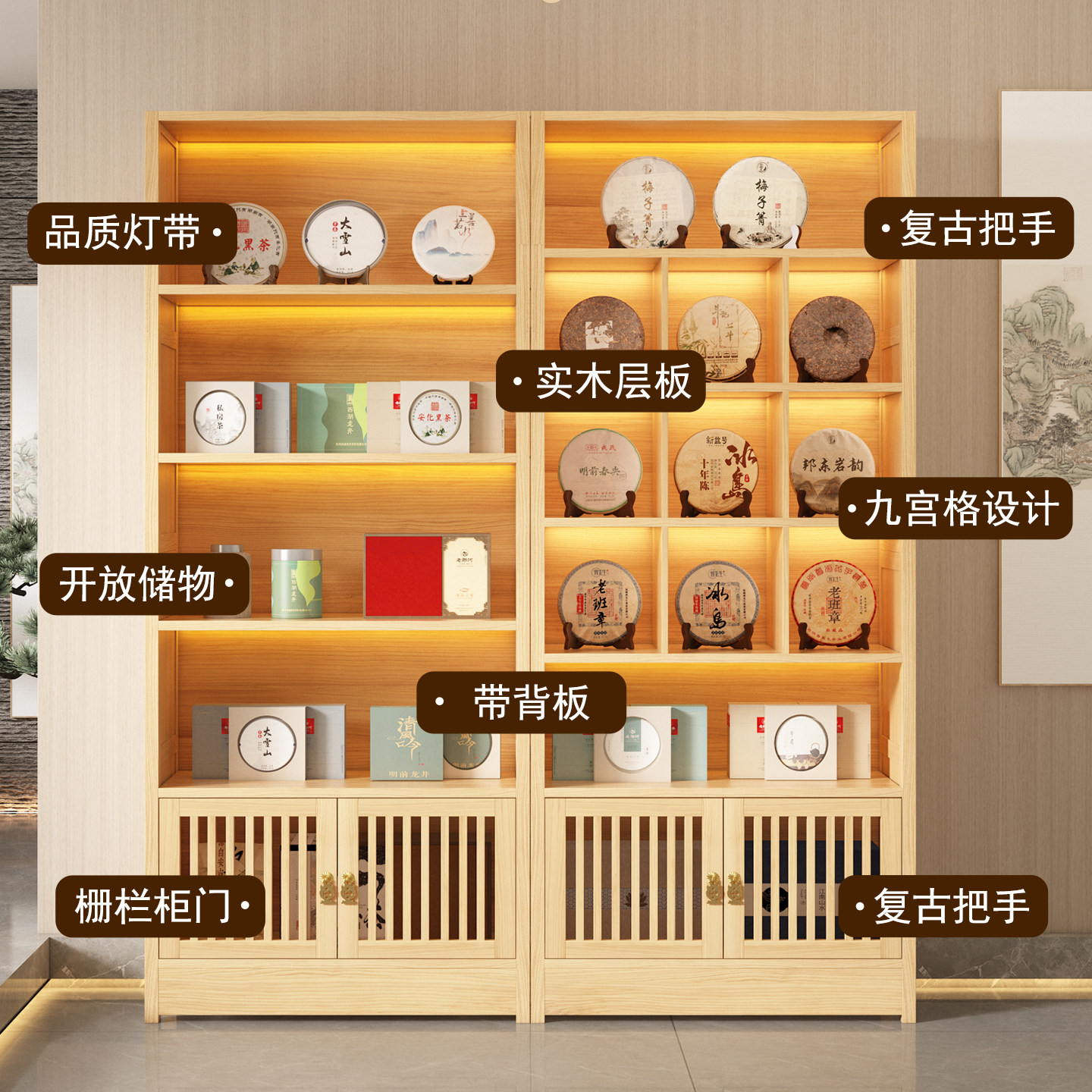 📚 实木带灯展示柜LED烟酒专卖店展示货柜香烟白酒陈列架高端店铺柜