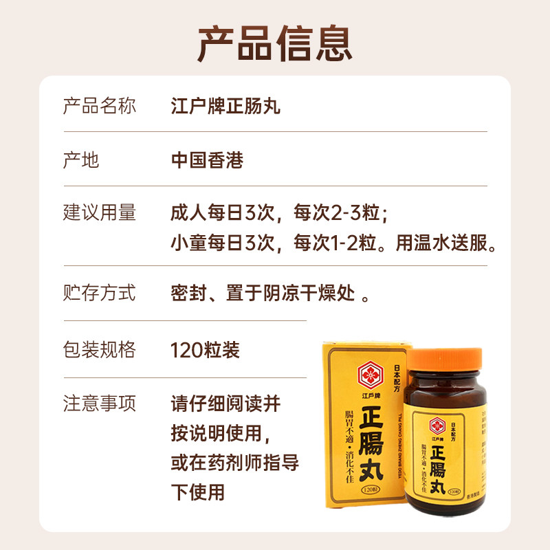 📚 香港万宁江户牌正肠丸120粒胃胀消化不良腹胀腹泻肠胃调理整肠丸