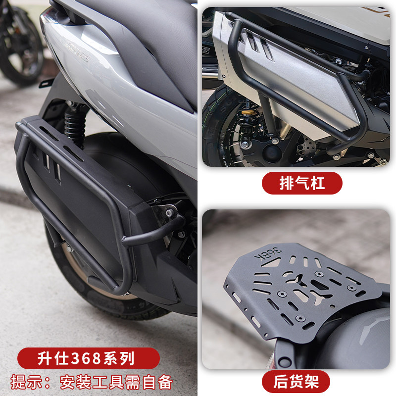📚 适配升仕368G/E/K/D/M护杠排气防摔杠ZT368-G消音杠尾箱支架改装