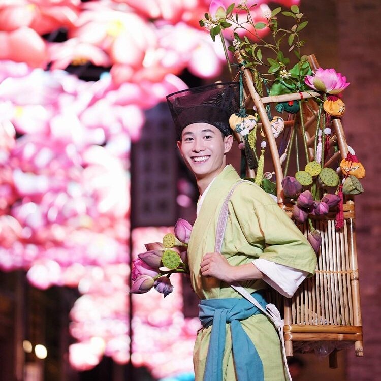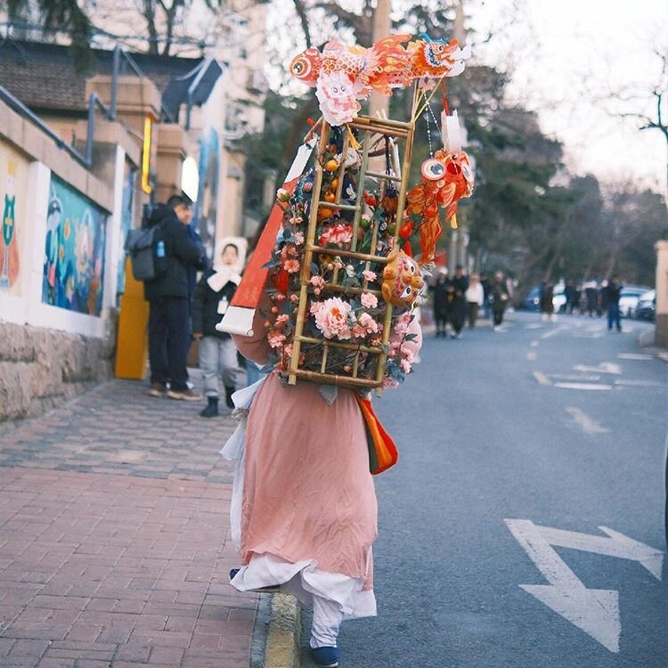 📚 小红书同款新年卖花郎背篓竹制箱徒步包景区古镇古装道具竹篓道具