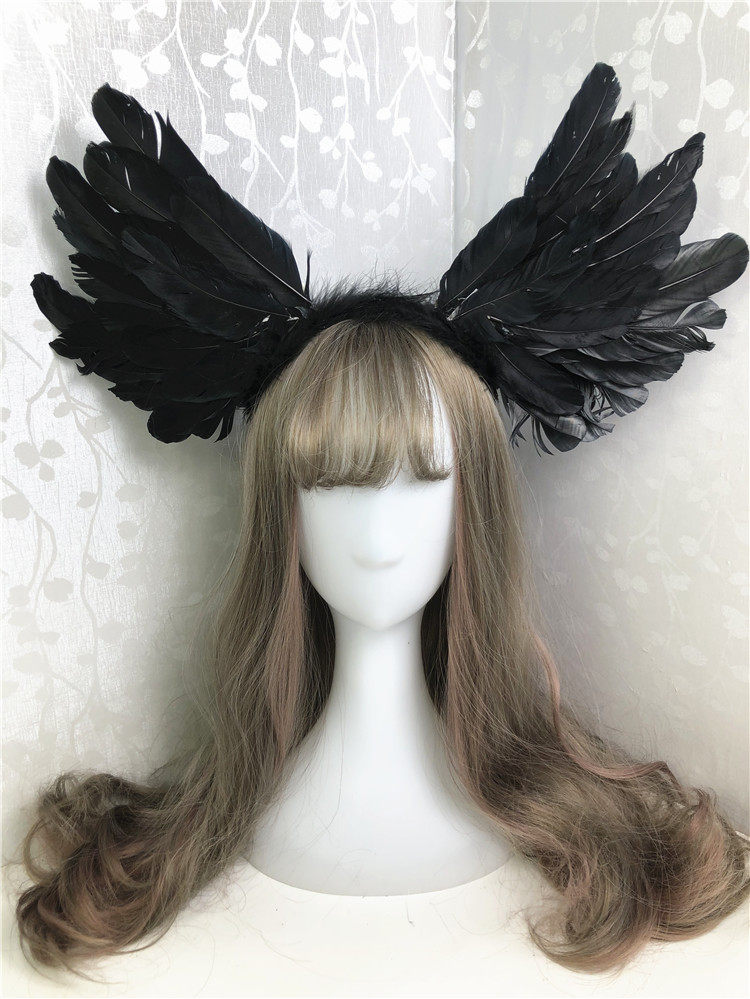 📚 COS天使翅膀黑暗恶魔骑士表演舞台演出万圣节羽毛发箍走秀道具