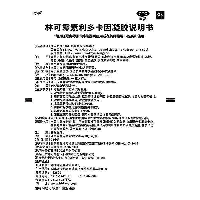 📚 诺舒林可霉素利多卡因凝胶10g*1支/盒正品官方旗舰店连锁药房现货