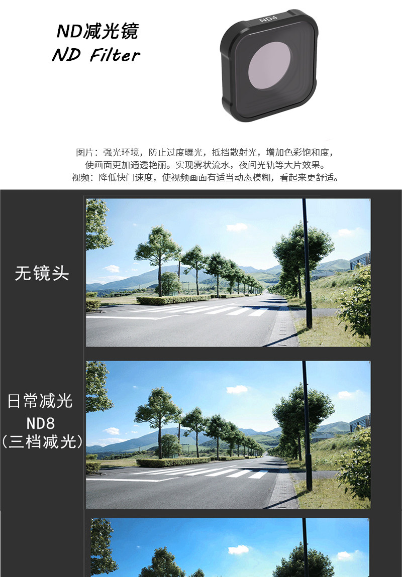 📚 适用于Gopro 9/10/11/12/13相机滤镜UV保护ND减光CPL偏振镜抗光害