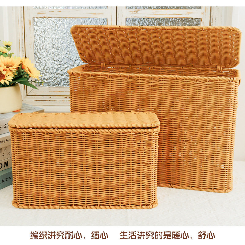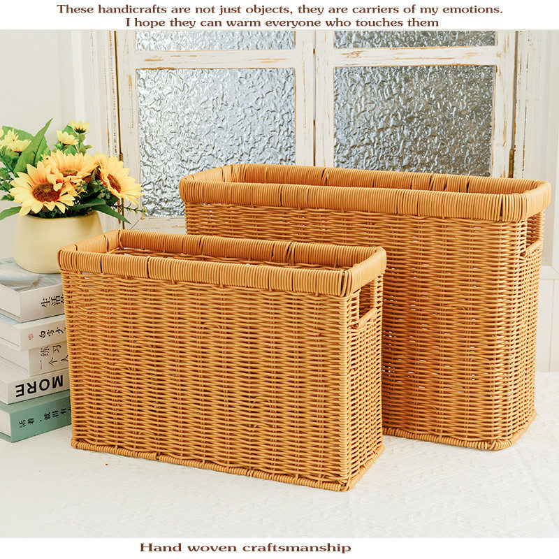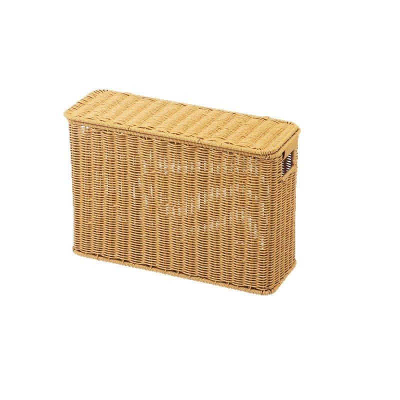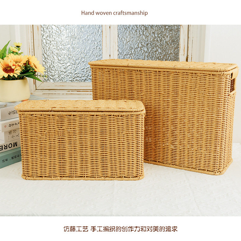 📚 仿藤编收纳箱窄高扁长型带盖收纳筐家用缝隙杂志筐墙角沙发储物盒