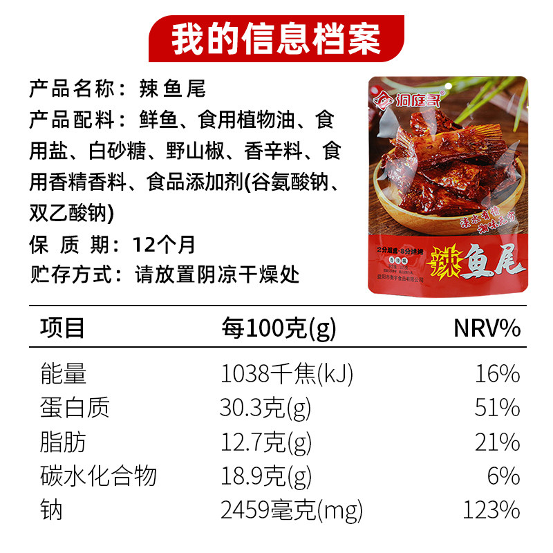 📚 洞庭哥香辣鱼尾湖南特产网红麻辣洞庭湖鱼尾鱼干