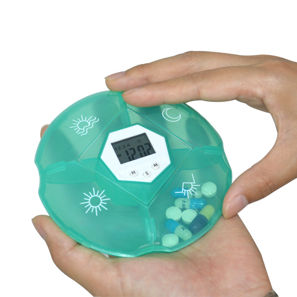 📚 智能电子提醒药盒 服药提示器 四格便携式收纳盒 按时吃药