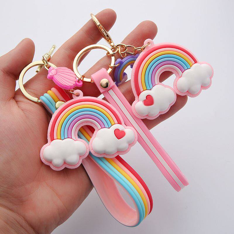 📚 极速Silicone Keyring For Women Cute ShelKl Rainbow Keychain