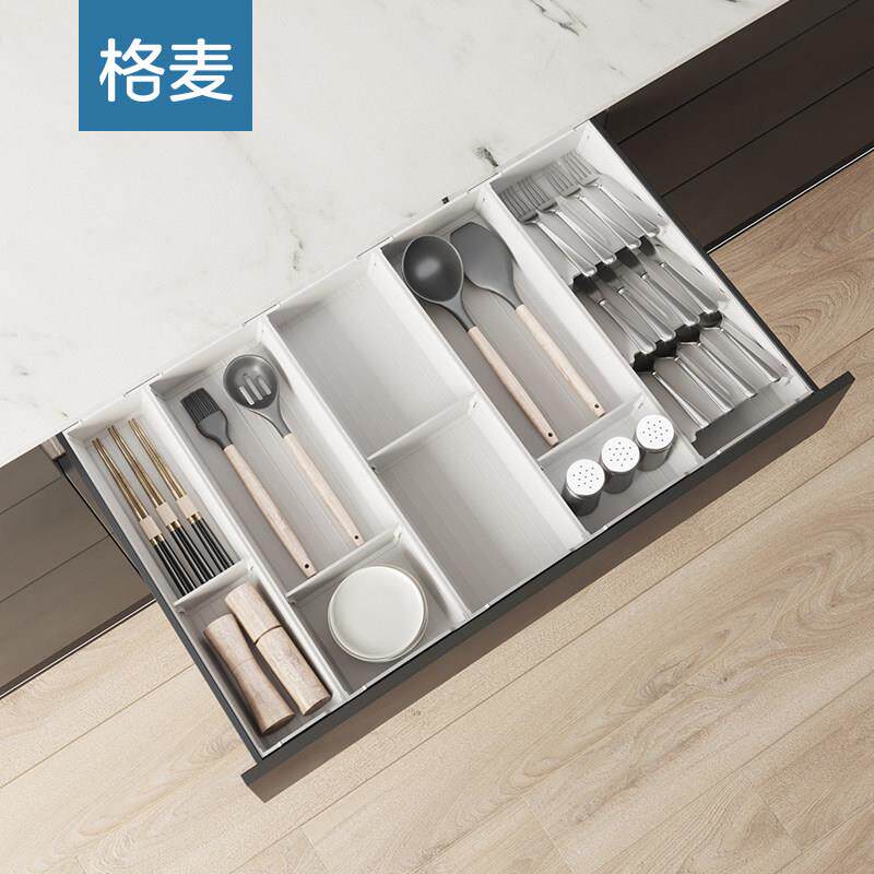📚 抽屉分隔刀叉收纳盒 免打孔铝质餐具架 自由组合厨房置物架 欧式