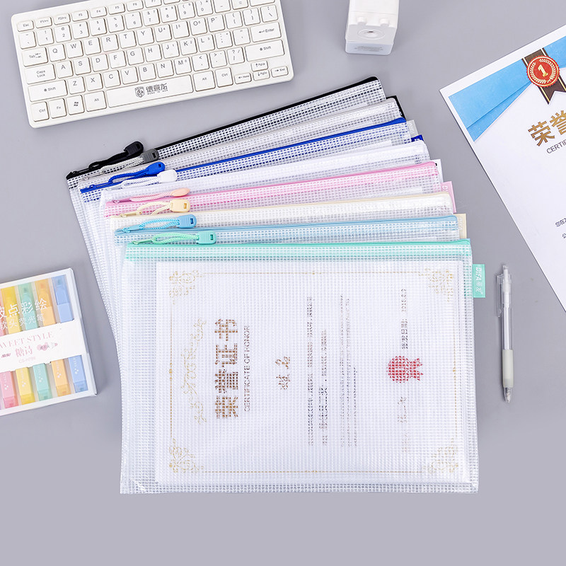 📚 A4透明网袋A3网格拉边袋资料收纳防水文件袋学生A5网状拉链袋批发