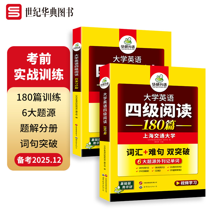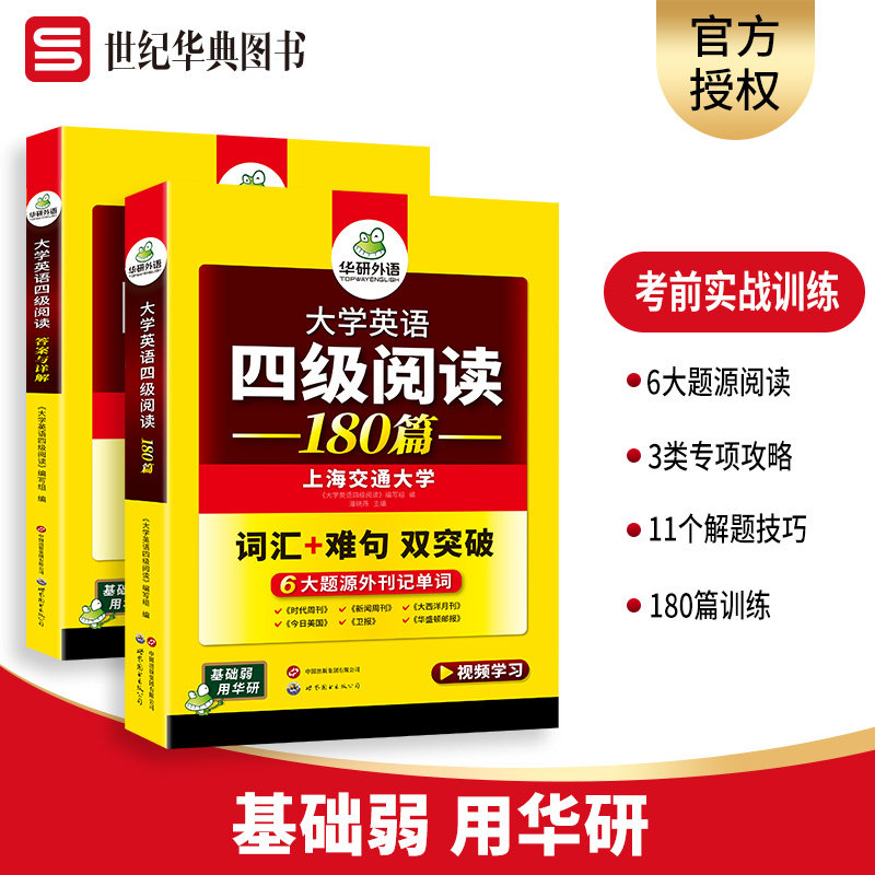 📚 华研外语 大学英语四级阅读180篇 攻破阅读理解技巧 配视频讲解 备考CET4考试资料