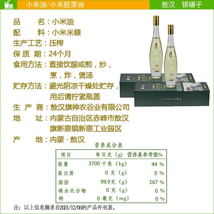 📚 内蒙古银碾子小米油375ml食用油物理压榨胚芽油米糠油礼盒装植油