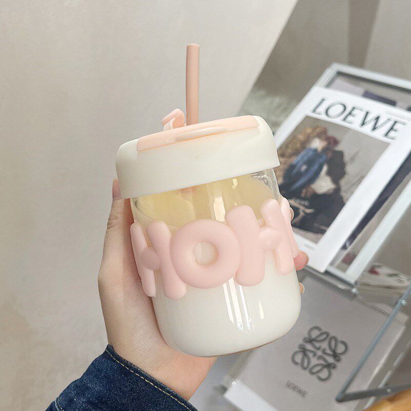 📚 新款豆浆杯家用便携外带上班族耐高温咖啡玻璃杯女士可爱带吸管