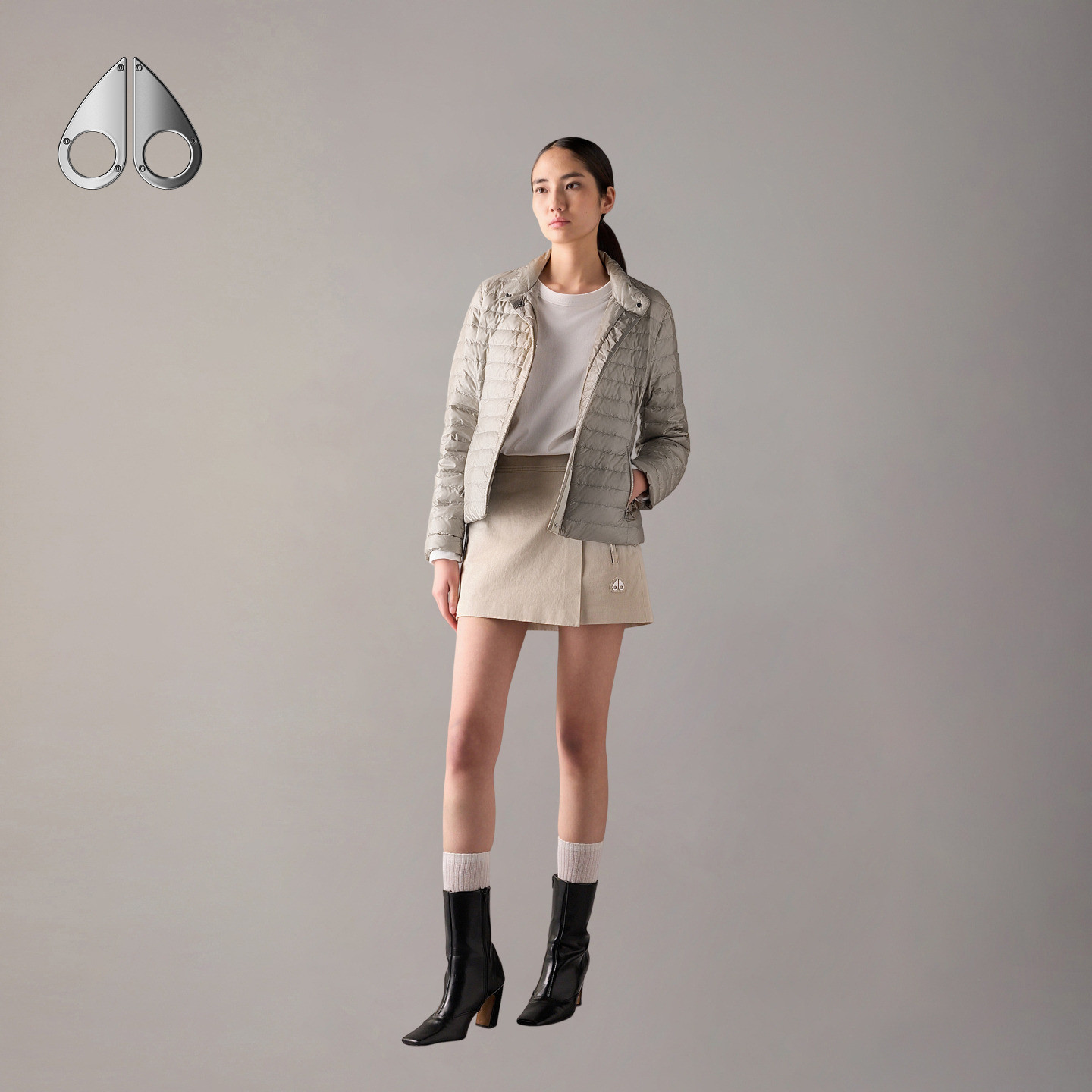 📚 [早春新品]MOOSE KNUCKLES 女士假两件收腰轻羽鹅绒小剪刀羽绒服