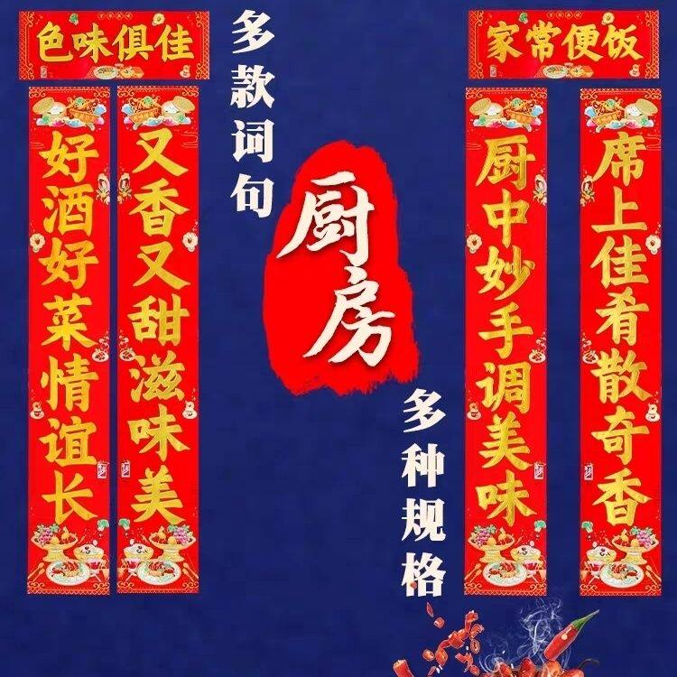 📚 满烫金字厨房对联春联厨房门贴纸饭店对联春节新年过年门贴纸福字