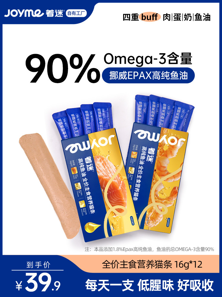 📚 Joyme着迷挪威高纯鱼油猫条主食美毛营养全价湿粮餐包猫咪零食