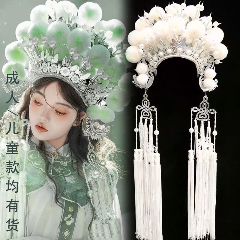 📚 绒球凤冠头饰国风戏曲古装头饰摄影T台走秀七星中国风民族风国潮