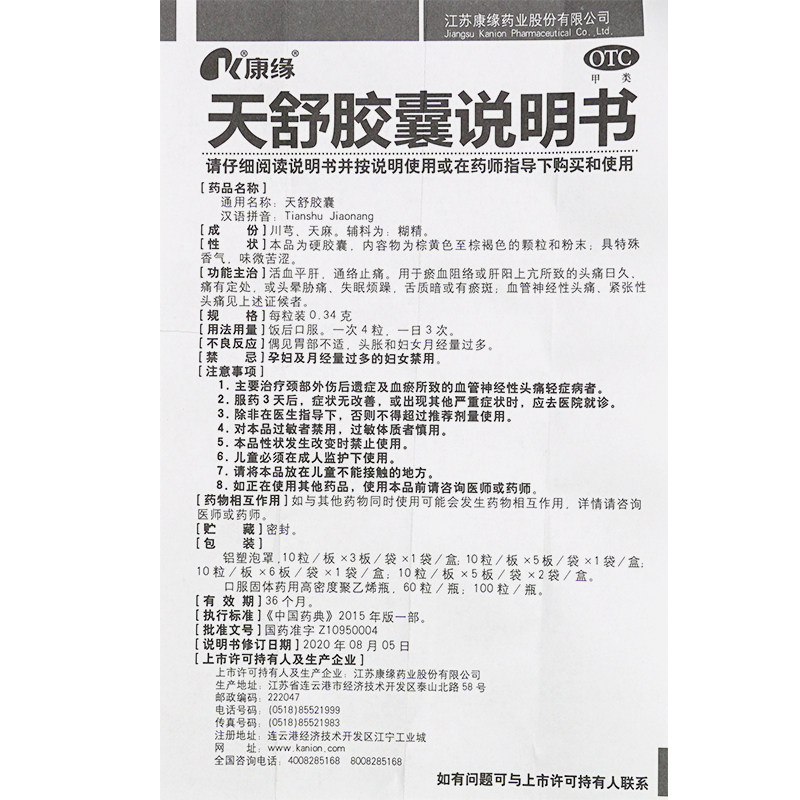 📚 康缘天舒胶囊50粒活血通络止痛紧张性头痛失眠药中药烦躁非天舒片