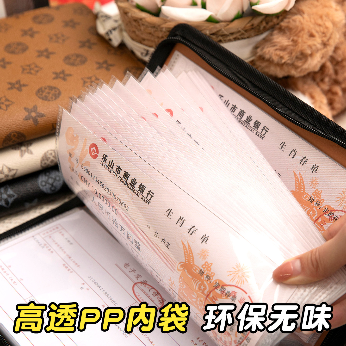 📚 高端拉链款定期银行存折存单收纳本2025年新款大容量活页票据支票存单夹家用带密码锁纸质存款单收纳册专用夹