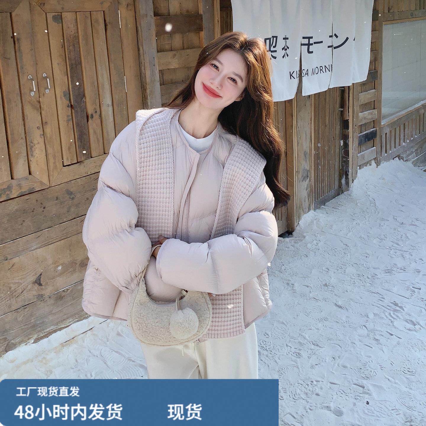 📚 粉色针织连帽泡芙90绒羽绒服女2025冬季新款小个子保暖超好看外套