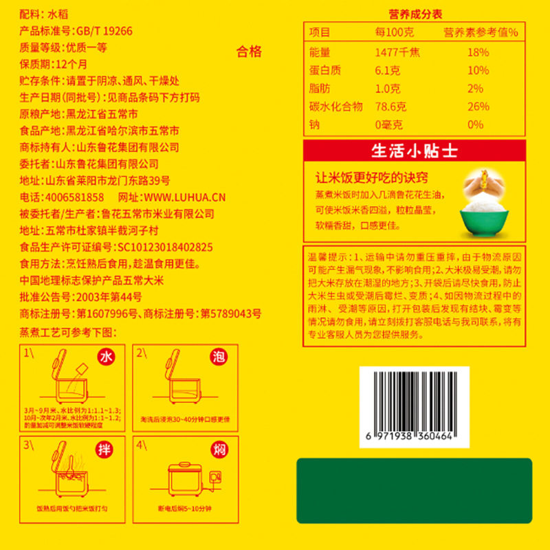 📚 鲁花福花原香五常大米5kg*1袋GB/T19266福利团购东北大米蒸饭10斤