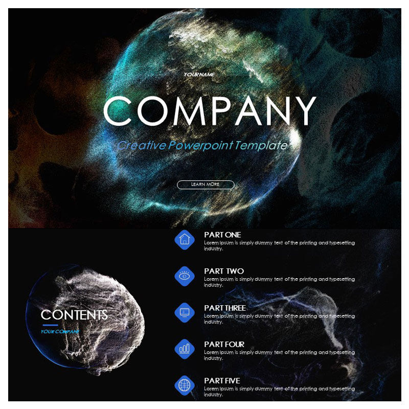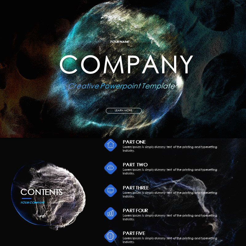 📚 XY106大气ppt模版粒子风暴创意视觉科技大数据创意黑色品牌推广