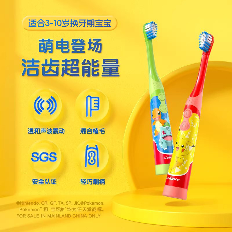 📚 高露洁儿童电动牙刷3到10岁超细柔软轻柔声波震动小巧宝可梦联名