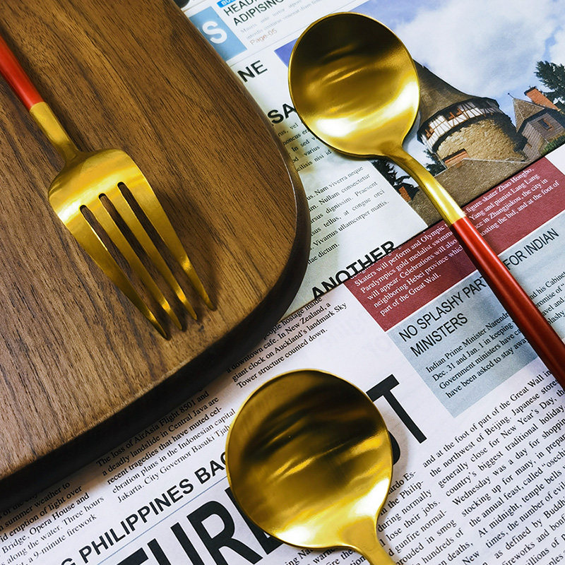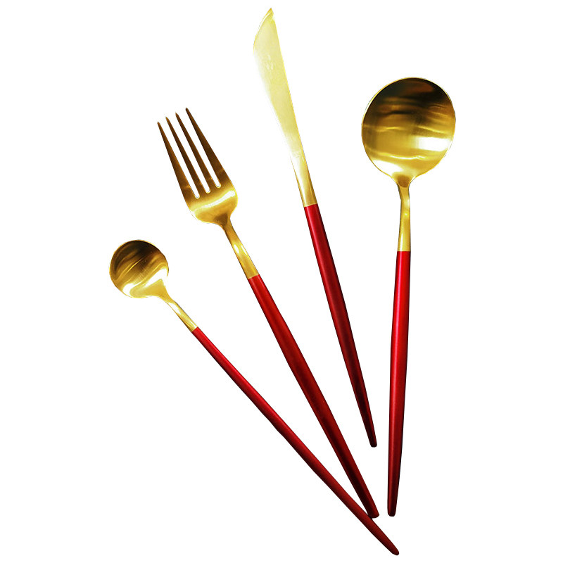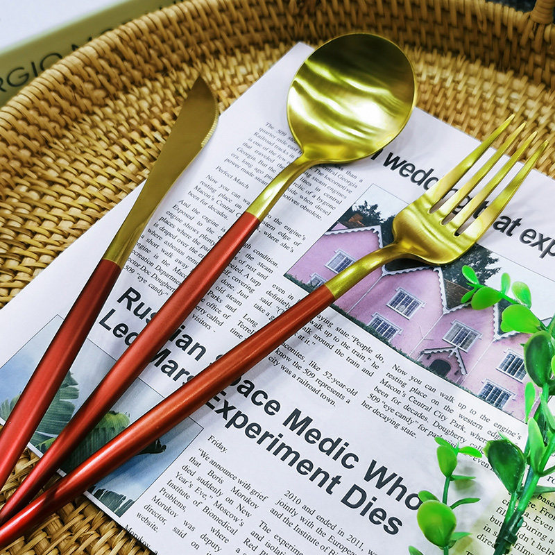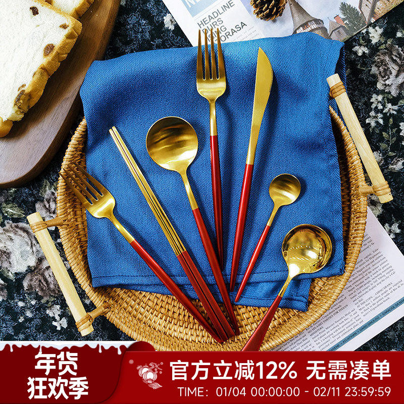 📚 过目不忘的那种美!高端红刀叉勺筷子三件套装家用甜品叉勺西餐具
