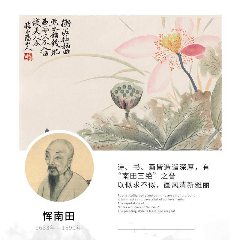 📚 荣宝斋装饰画客厅恽南田覆刻画新中式现代卧室客厅背景墙玄关挂画