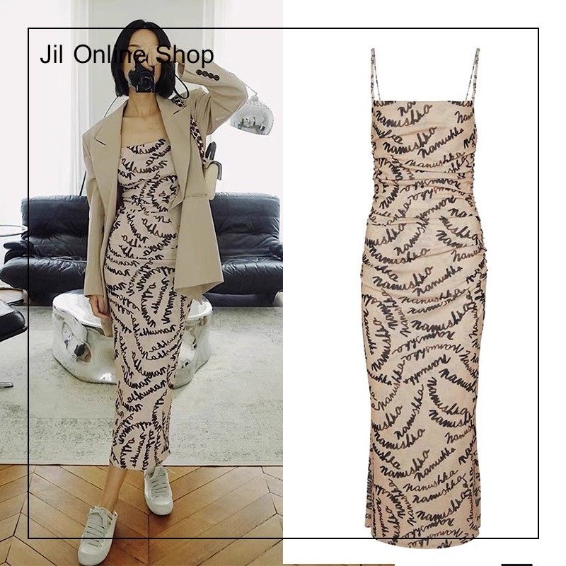 📚 买手现货Nanushka长裙25SS新款Alexa Logo印花修身吊带露背连衣裙