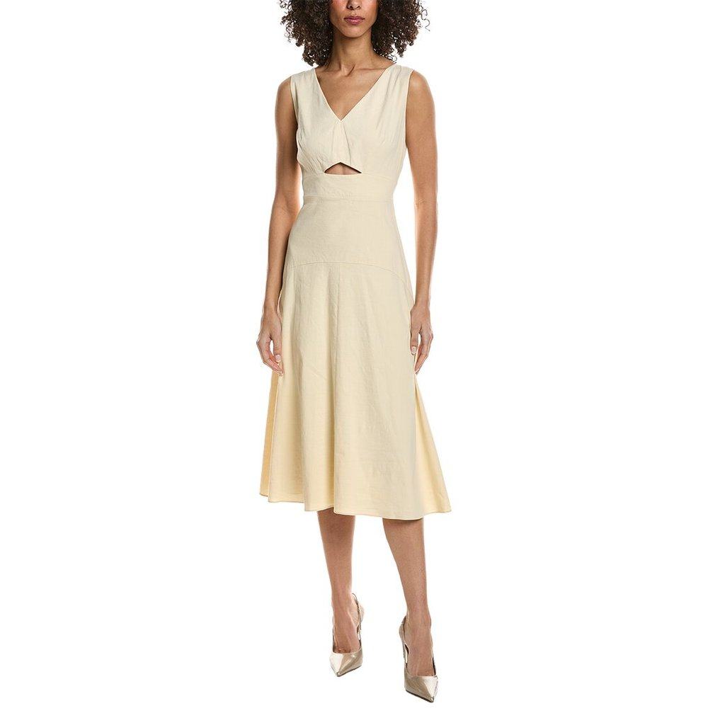 📚 自营Theory Midi Linen-Blend Dress - white 美国奥莱直发