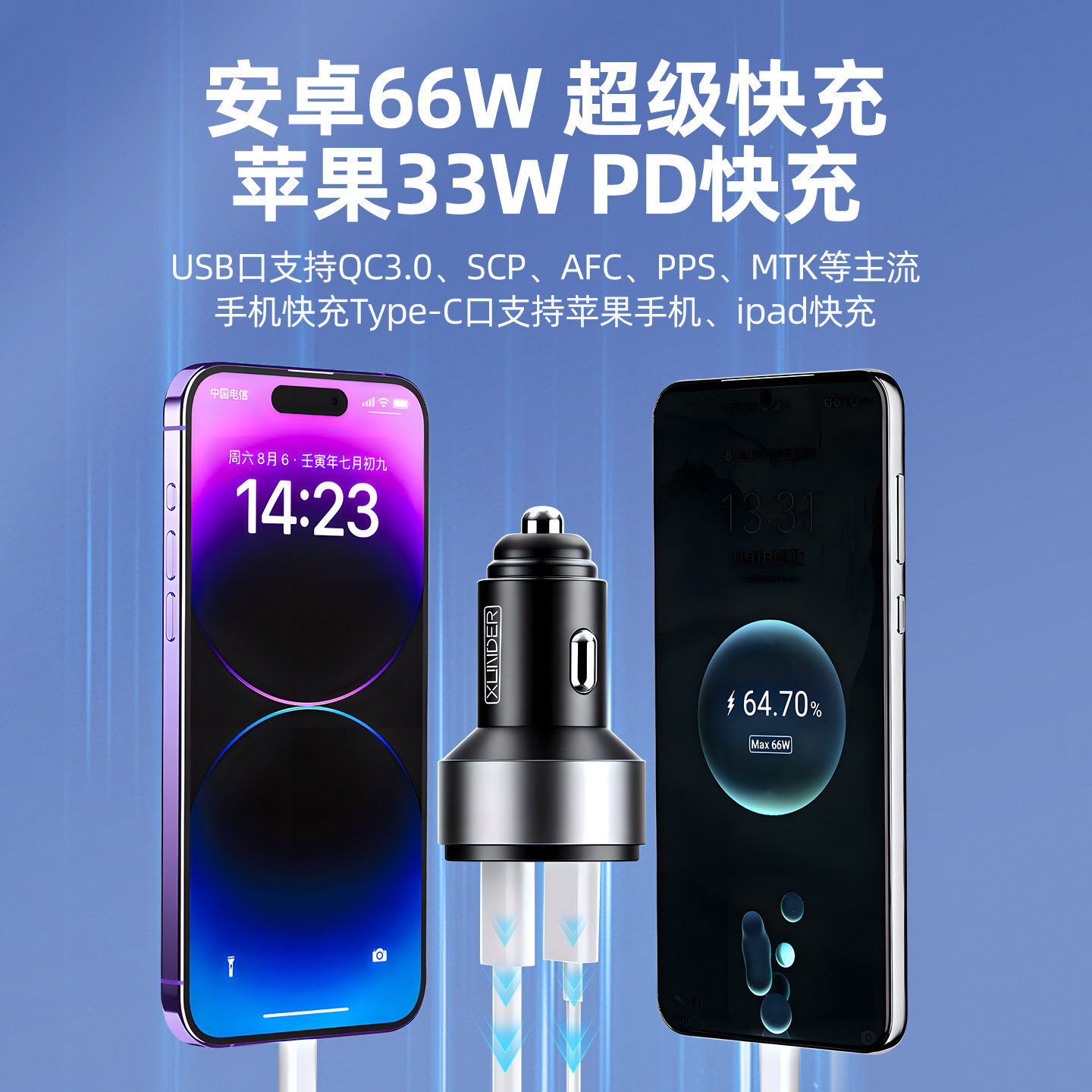 📚 66W超级快充车充双口快充转换插头 支援PD快充协议的汽车点烟器充