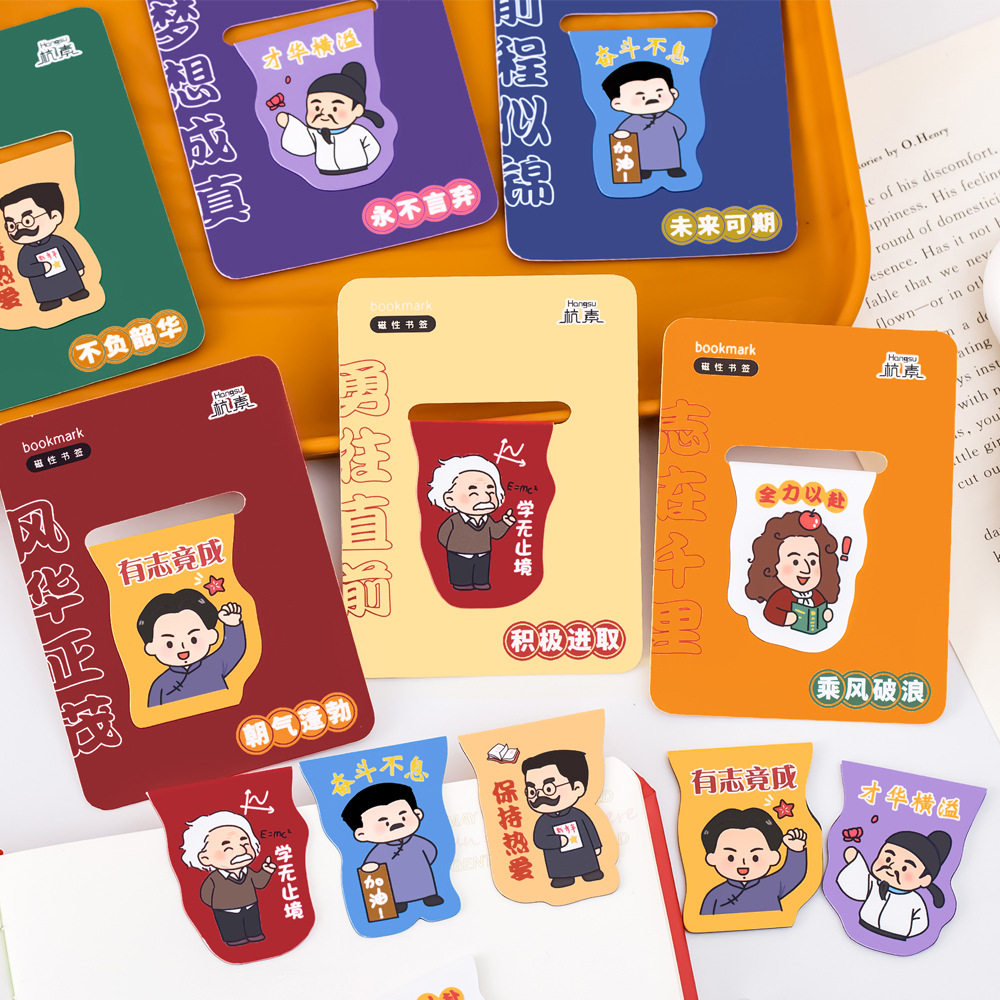 📚 bookmark书签卡通名人磁性书学生折叠磁铁书页夹新青年励志文字