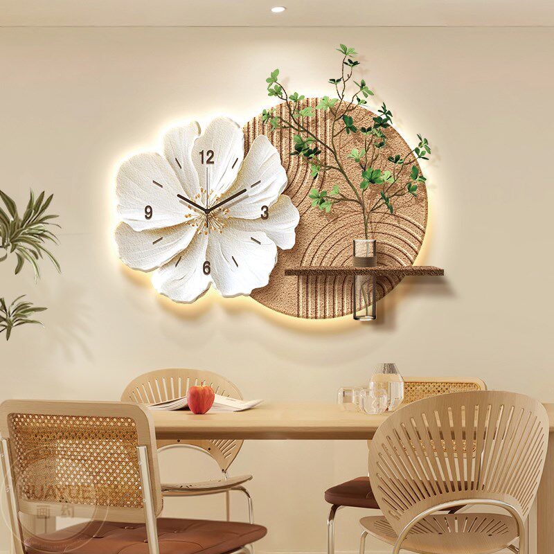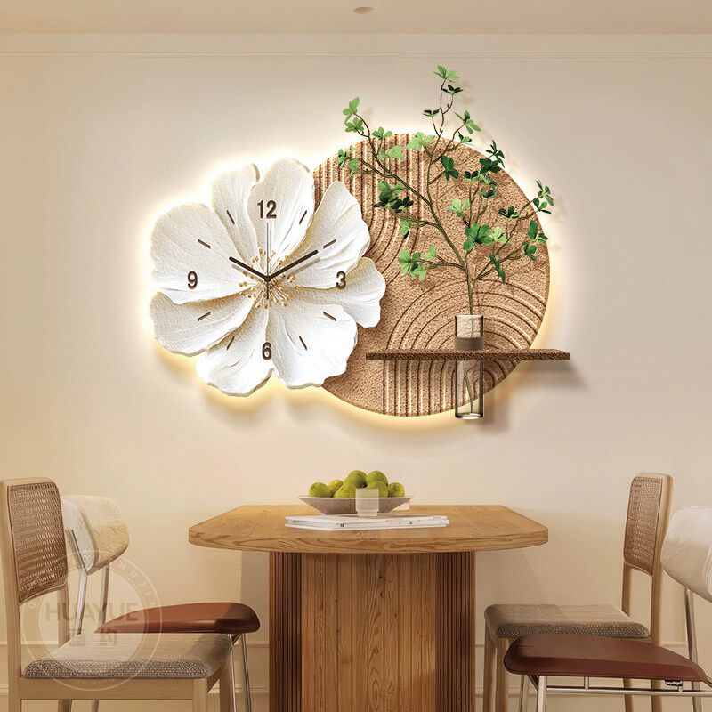 📚 2025新款餐厅装饰画创意挂钟水培绿植客厅电视背景墙挂画立体钟表