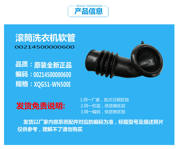 📚 原装海尔洗衣机配件波纹软管XQG50-Q818A/WN550TSIA/2/3/31(AI600
