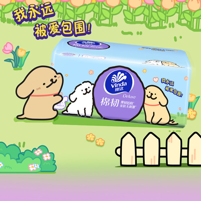 📚 维达12包抽纸90抽S码餐巾面巾纸线条小狗棉韧特惠装家用纸巾