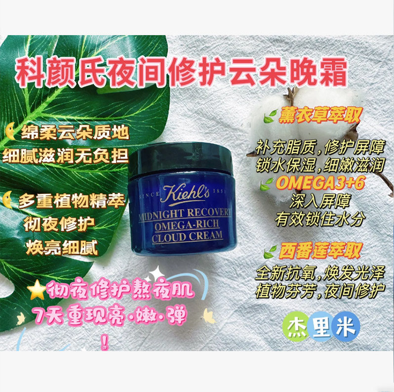 📚 海淘现货科颜氏夜间云朵面霜蓝精灵精华面霜中小样14ml晚间修复